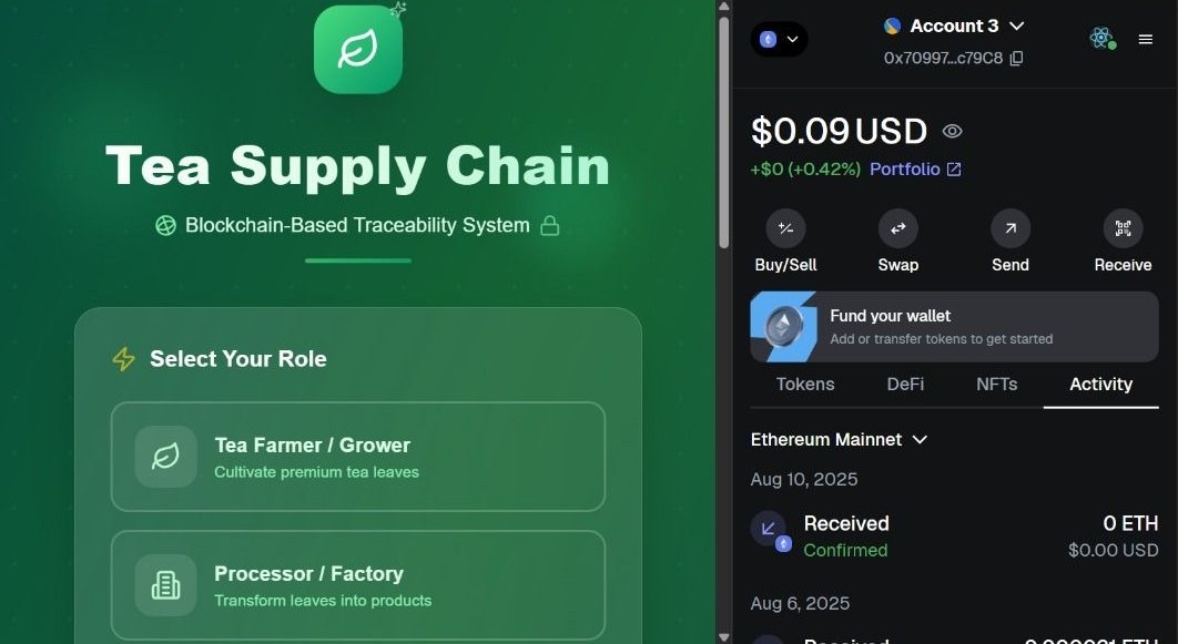 smart contracts for secure, transparent tracking, QR code verification, and SAP HANA integration via a Web3 dashboard.